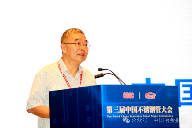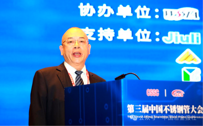 圖為鋼協不鏽鋼分會專家委員會專家李天寶做題為《中國不鏽鋼管行業發展現狀及未來發展趨勢》的主旨報告