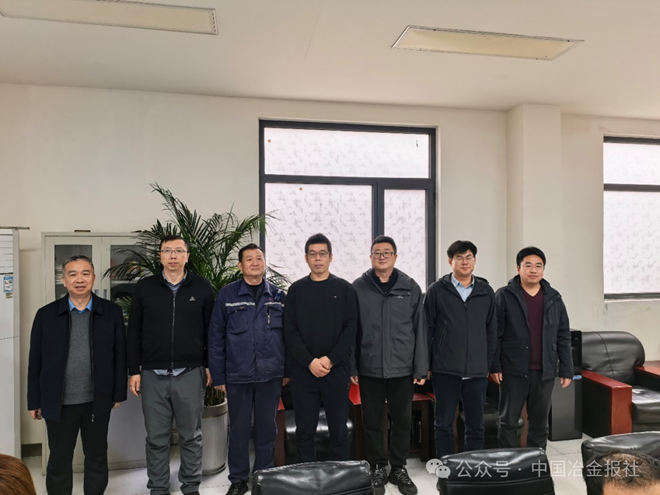 圖為2025年10月29日中國金屬學會專家委員會主任王天義(中間)、金鼎重工煉鐵廠廠長江海峰(右1)、高爐主任王主任(左1)、豫興公司技術專家周西辰(左2)、周紅朝(右2)在熱風爐操作室合影留念