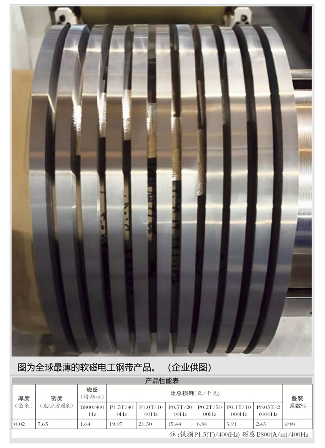 “如今,我們0.02毫米全球最薄電工鋼帶的成功下線,一舉擊穿國外30年技術壁壘,讓中國高端裝備首次擁有‘毫米級體積、微米級精度、毫秒級響應’的國產心髒,更把‘中國厚度’推向全球鐵芯材料供應鏈的最頂端——0.02毫米,重新定義了世界超薄電工鋼的‘天花板’。目前,我們正在進行0.018毫米的開發。”日前,該公司董事長黃穗對《中國冶金報》記者說。