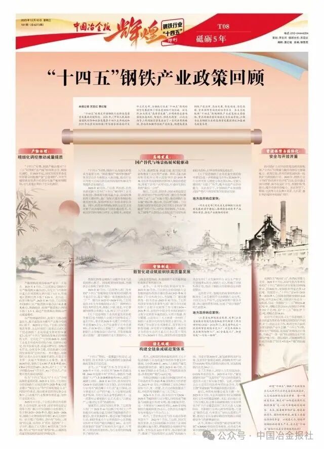 回望“十四五”,鋼鐵產業政策體係已從碎片化應對走向係統性設計,從末端治理轉向源頭重塑。每一項政策背後,都是對“如何建設現代化鋼鐵強國”這一時代命題的深刻回答。未來,隨著碳市場擴容、綠色金融深化、國際規則對接,政策工具箱還將持續豐富。以製度之力,鑄就中國鋼鐵的新質生產力,這正是“十四五”留給行業最寶貴的製度紅利!