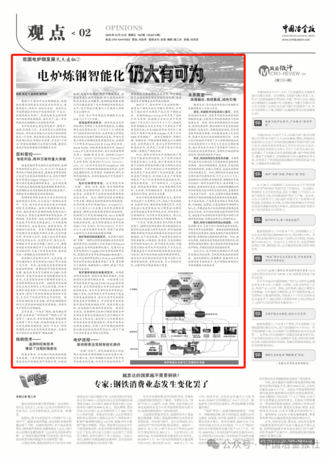 黨的二十屆四中全會明確提出,堅持把發展經濟的著力點放在實體經濟上,堅持智能化、綠色化、融合化方向。具有巨大節能降碳潛力的電爐短流程將在“十五五”時期得到大力推廣,智能化技術也將保障電爐短流程煉鋼高效、穩定生產,進一步加快推進我國鋼鐵行業的轉型升級。
