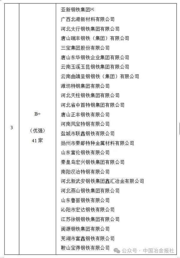 根據該院發布的中國鋼鐵企業競爭力(暨發展質量)評級(2025)榜單,中國寶武、中信泰富特鋼、首鋼集團、鞍鋼集團、河鋼集團、南鋼集團、湖南鋼鐵集團、沙鋼集團、青山集團、北京建龍集團、敬業集團、柳鋼集團、新興鑄管、中天鋼鐵、日照鋼鐵控股集團有限公司、上海德龍鋼鐵集團16家鋼企被評為A+(極強)鋼企,另有34家鋼企被評為A(特強)級,41家鋼企被評為B+(優強)級(詳見表3)。今年的A+、A級鋼企數量分別較去年下降2家、1jia,danhejicugangchanliangzhanquanguozongchanliangdebizhongjibenchiping,yejinguihuayuanzhuanjiahuiyingcheng,zhezhuyaoshiyinweichanyejizhongdudetisheng,yijijinliangniangangqijingyingshujupubianbujiyuqi。