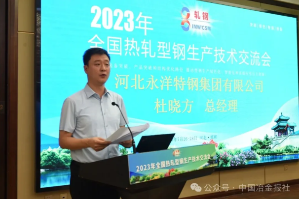 圖為杜曉方在全國熱軋型鋼生產技術交流會做報告。