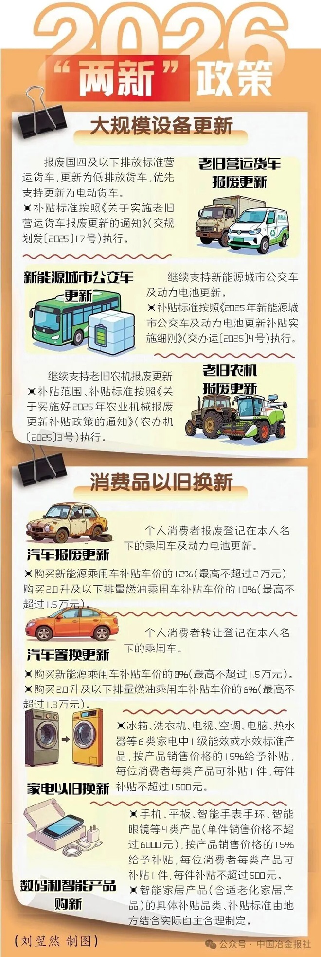 日前,國家發展改革委、財政部發布了《關於2026年實施大規模設備更新和消費品以舊換新政策的通知》(以下簡稱《通知》),明確了2026年“兩新”(大規模設備更新和消費品以舊換新)政策的支持範圍、補貼標準和工作要求,是2025年中央經濟工作會議提出“優化‘兩新’政策實施”的具體落地。