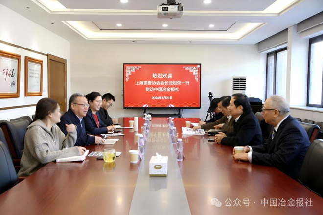 1月20日,上海鋼管行業協會會長沈根榮一行到訪中國冶金報社,與中國冶金報社副社長範鐵軍就2026第四屆中國鋼管產業新質發展暨第四屆“鋼管工匠”表彰大會宣傳工作的推進事宜開展深度座談交流,明確了雙方的宣傳合作方向。