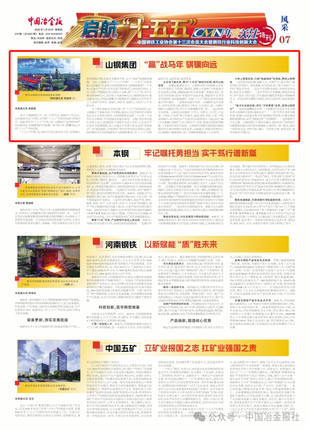 為了保證2026年首戰告捷,為“十五五”發展贏得主動,山鋼確立了2026年的工作思路:jianchiyixijinpingxinshidaizhongguoteseshehuizhuyisixiangweizhidao,quanmianguancheluoshidangdeershidaheershijieliciquanhuijingshen,laolaobawogaozhiliangfazhanzheyizhuti,jianggaigechuangxinzuoweihexindongli,bazengjinzhigongfuzhizuoweifendoumubiao,yiquanmiancongyanzhidangzuoweijianqiangbaozhang,shenrushishishengchanjingyingyuzibenyunying“雙輪驅動”,將“精益提質、協同增效”貫穿改革發展各領域全過程,加快建設具有持續極強競爭力的鋼鐵集團,為“十五五”發展贏得主動、贏得優勢、贏得未來。