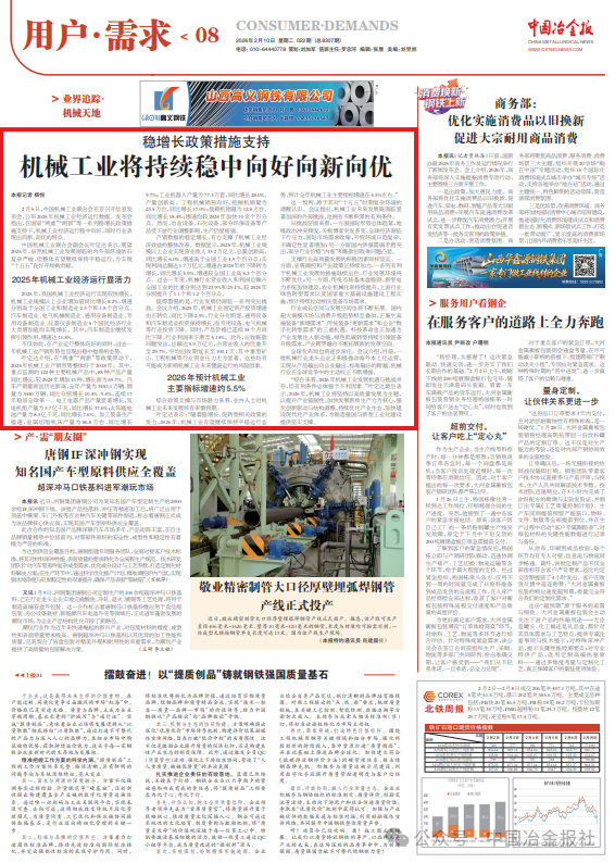 中國機械工業聯合會副會長葉定達表示,展望2026年,雖然機械工業發展麵臨的內外部環境依舊複雜嚴峻,但整體有望繼續保持平穩運行,為實現“十五五”良好開局做貢獻。