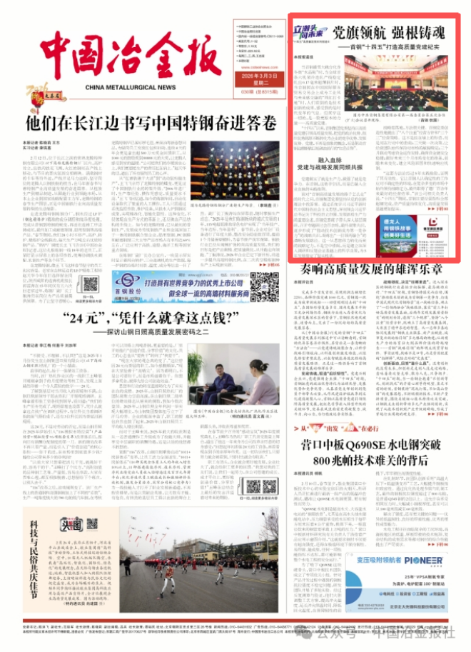 回首“十四五”,首鋼以實踐證明,黨建強,則企業強。5年(nian)來(lai),高(gao)質(zhi)量(liang)黨(dang)建(jian)為(wei)首(shou)鋼(gang)高(gao)質(zhi)量(liang)發(fa)展(zhan)提(ti)供(gong)了(le)堅(jian)強(qiang)政(zheng)治(zhi)保(bao)證(zheng),注(zhu)入(ru)了(le)強(qiang)大(da)精(jing)神(shen)動(dong)力(li)。展(zhan)望(wang)新(xin)征(zheng)程(cheng),站(zhan)在(zai)新(xin)的(de)曆(li)史(shi)起(qi)點(dian)上(shang),首(shou)鋼(gang)黨(dang)委(wei)將(jiang)繼(ji)續(xu)高(gao)擎(qing)旗(qi)幟(zhi),深(shen)化(hua)“一引領兩融合”實shi踐jian,團tuan結jie帶dai領ling全quan體ti幹gan部bu職zhi工gong,在zai深shen化hua改gai革ge中zhong勇yong當dang先xian鋒feng,在zai培pei育yu新xin質zhi生sheng產chan力li中zhong走zou在zai前qian列lie,在zai服fu務wu國guo家jia戰zhan略lve中zhong展zhan現xian更geng大da作zuo為wei,讓rang黨dang旗qi在zai首shou鋼gang的de新xin征zheng程cheng上shang高gao高gao飄piao揚yang。