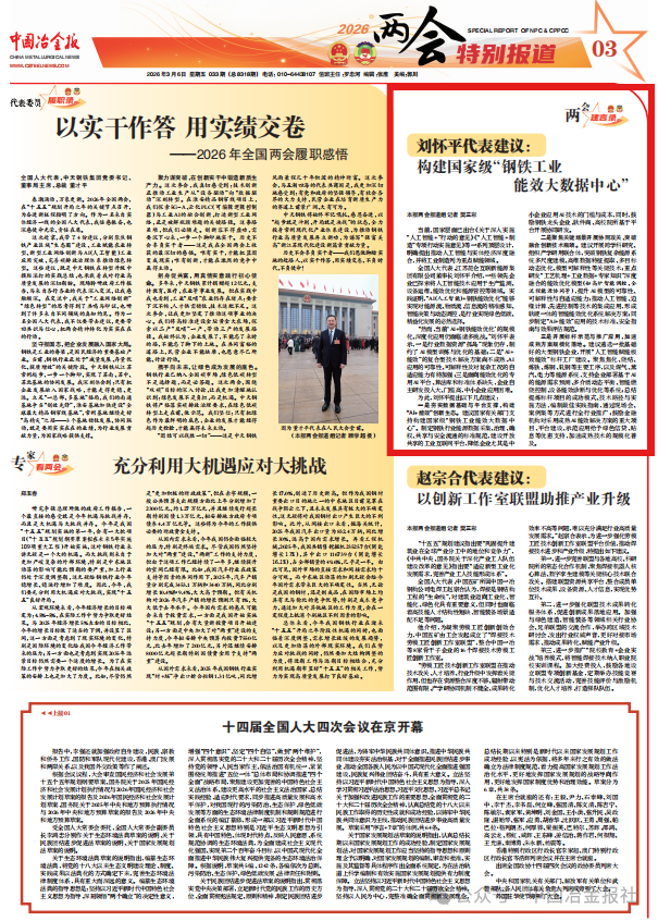 劉懷平代表建議:構建國家級“鋼鐵工業能效大數據中心”