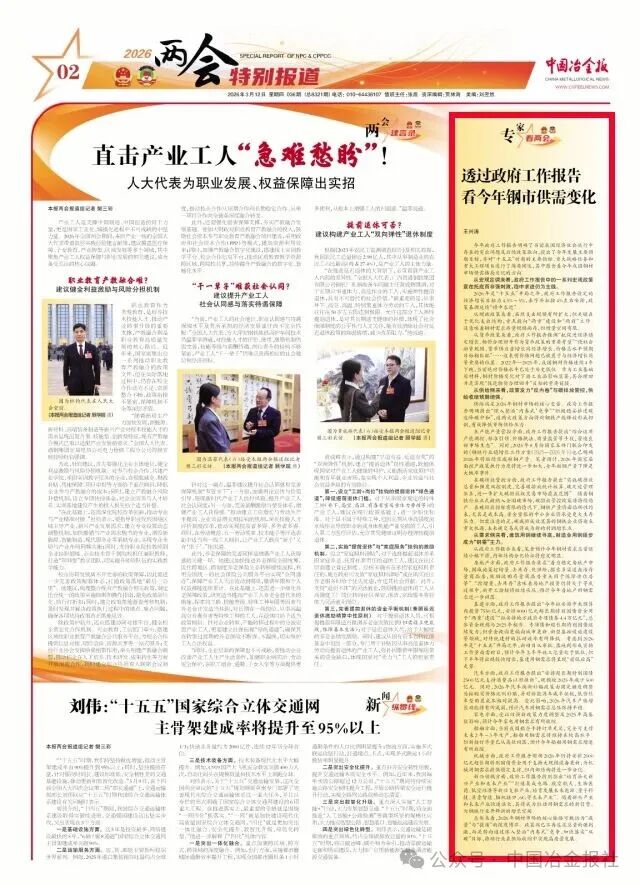 今年政府工作報告明確了當前我國經濟社會運行中存在的突出問題及後續政策取向,提出了今年發展主要預期目標,並對“十五五”時期的主要指標、重大戰略任務和重大工程項目進行了簡要闡述,其中蘊含著今年我國鋼材市場供需格局變化的方向。