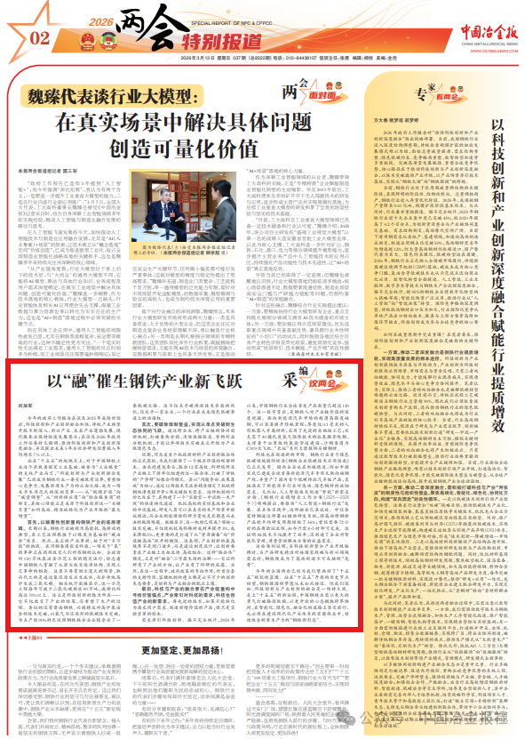 今年的全國兩會已經為我們擘畫好了“十五五”規劃的藍圖。站在“十五五”開局的曆史節點回望,鋼鐵強國的夢想從未如此接近。但我們深知,科技創新與產業創新的融合是一場持久戰。走上“十五五”的新征程,中國鋼鐵業需以更大的勇氣打破路徑依賴,以更開放的心態擁抱跨界協同,在智能化、綠色化、融合化的道路上堅定前行,也必將在建設現代化產業體係的宏圖偉業中,創造飽含新質生產力的“鋼鐵新形態”。