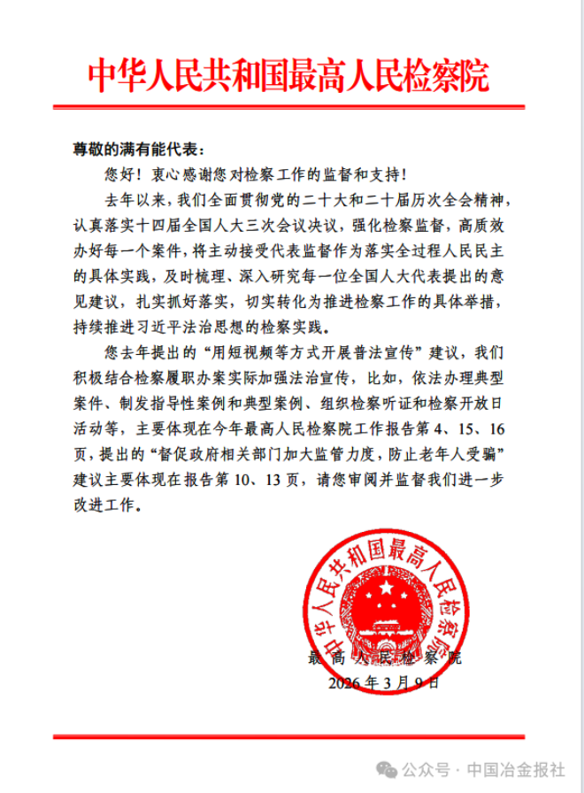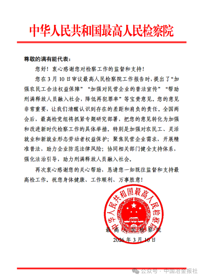 2026年全國兩會期間,他將目光聚焦冶金礦山行業的特殊需求,“冶金、礦山等特殊行業的生產車間設備需24小時連續運轉,廣大一線員工各項勞動權益保障情況必須高度關注。”為此,他建議由“兩高”牽頭出台行業專項指導意見,建立“事前預防、事中監督、事後懲戒”的立體化監管機製。