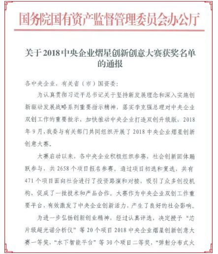 2019年6月6日,國務院國有資產監督管理委員會公布了2018年中央企業熠星創新創意大賽獲獎名單,積微循環榜上有名。