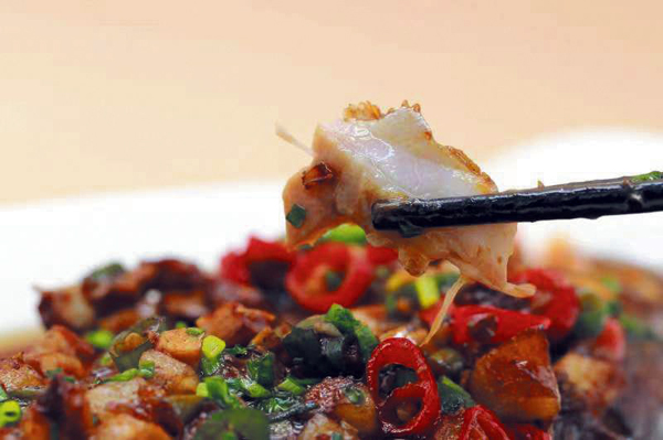 圖為馬鋼廚師製作的幹燒大黃魚。(馬力生 攝)
