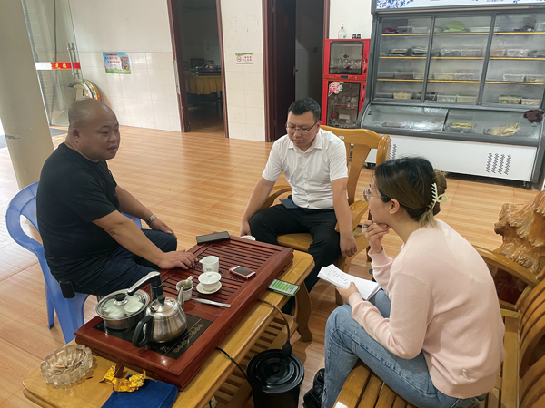 圖為《中國冶金報》記者(右)在福建省三明市三元區岩前鎮采訪當地居民。 (張倩茹 攝)