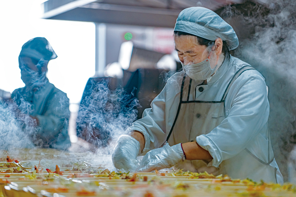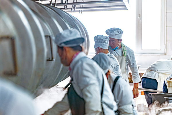 2021年,為進一步增強職工“舌尖上的幸福感”,鞍鋼集團本鋼北營公司組建了總建築麵積近5000平方米的配餐中心,整體設備按照中央廚房標準配置,擁有副食加工間、麵點製作間、主食加工間等生產線,滿負荷開動,可滿足1萬人的就餐需求。在這個中央廚房裏,48名北營生活服務中心餐飲工區職工每天用心烹製美食,溫暖著該公司職工的“三餐四季”,讓他們盡享幸福“食”光。