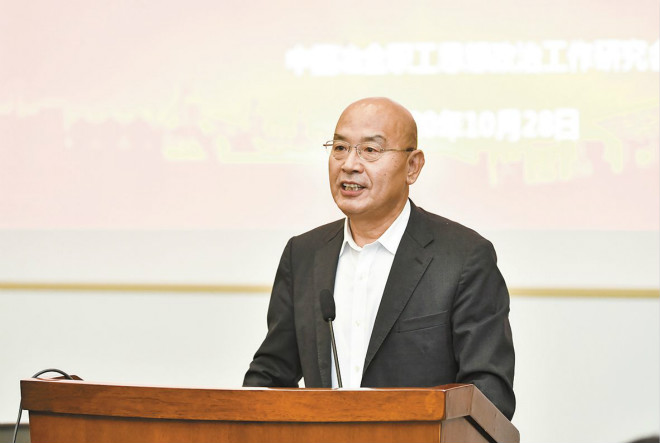 10月26日,在由中國冶金職工思想政治工作研究會舉辦的《習近平談治國理政》第三卷黨委書記讀書班上,中國鋼鐵工業協會黨委書記、執行會長何文波向來自各大鋼鐵企業的130多名黨建宣傳思想工作者指出了當前黨建宣傳思想工作的重點。