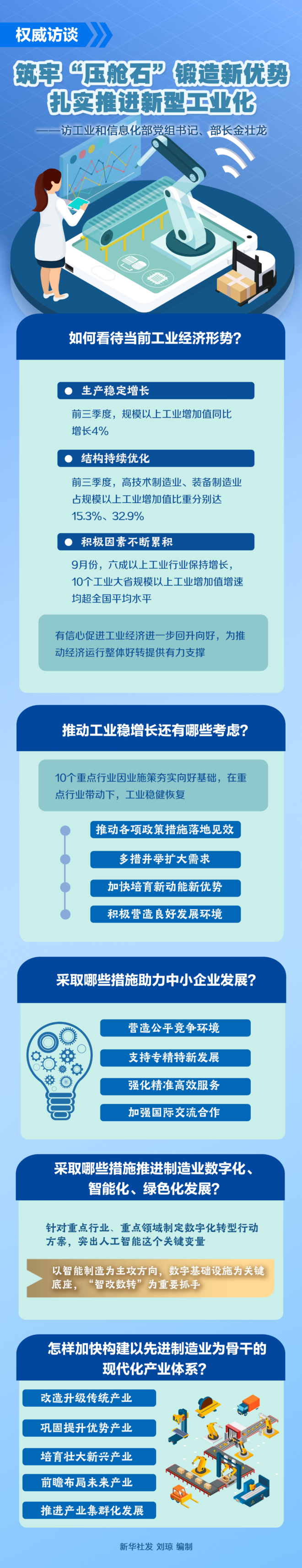 工(gong)業(ye)是(shi)國(guo)民(min)經(jing)濟(ji)的(de)主(zhu)體(ti)和(he)增(zeng)長(chang)引(yin)擎(qing),四(si)季(ji)度(du)經(jing)濟(ji)運(yun)行(xing)對(dui)實(shi)現(xian)全(quan)年(nian)目(mu)標(biao)任(ren)務(wu)至(zhi)關(guan)重(zhong)要(yao)。如(ru)何(he)鞏(gong)固(gu)恢(hui)複(fu)向(xiang)好(hao)態(tai)勢(shi)?怎(zen)樣(yang)培(pei)育(yu)持(chi)久(jiu)競(jing)爭(zheng)力(li)?工(gong)業(ye)和(he)信(xin)息(xi)化(hua)部(bu)黨(dang)組(zu)書(shu)記(ji)、部長金壯龍接受了新華社記者采訪。