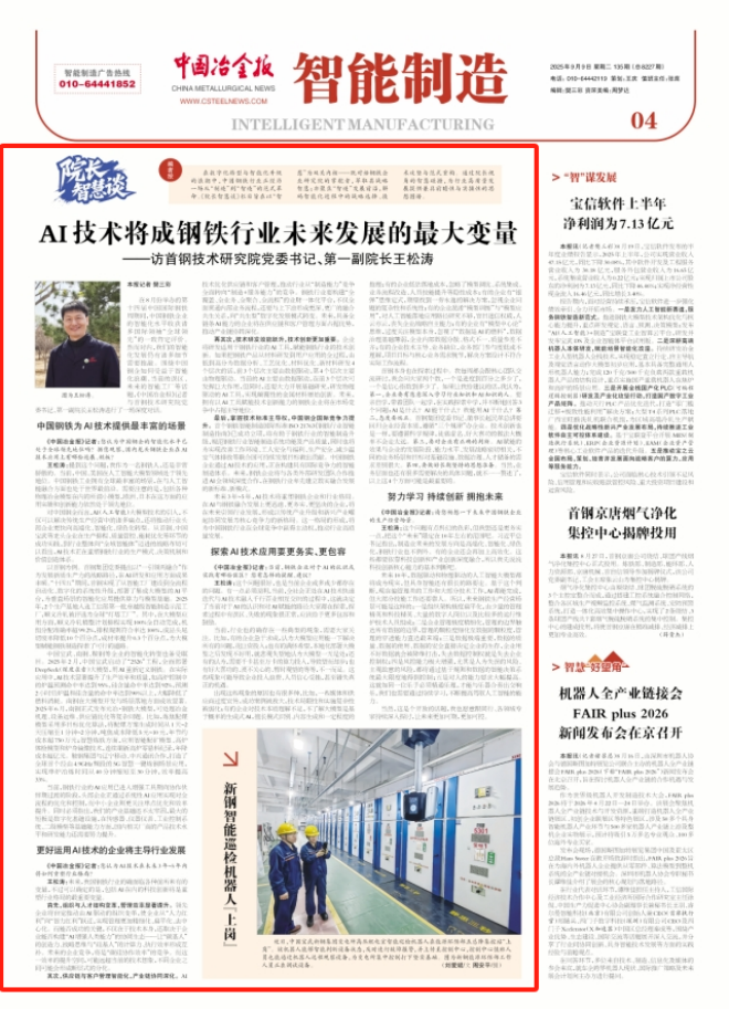 王鬆濤:未來,我國鋼鐵行業的確麵臨各種前所未有的變量,不過可以確定的是,包括AI在內的科技創新將是重塑行業格局的最重要變量。