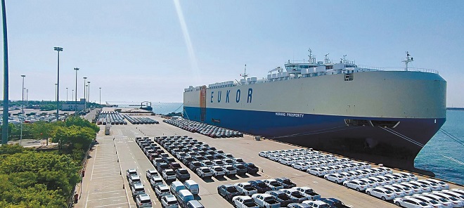 日前,2984輛國產商品車和95件設備搭乘“黎明昌盛”lunyoutianjinguojiyoulunmugangmatoushiwangnanmeizhou,chuangxiajinnianchuyilaitianjingangwaimaoshangpinchedanchuanchukouzuoyeliangxingao。tuweidengdaizhuangchuandetianjinguojiyoulunmugangmatouyijiao。 (記者 蔡立軍 供圖)