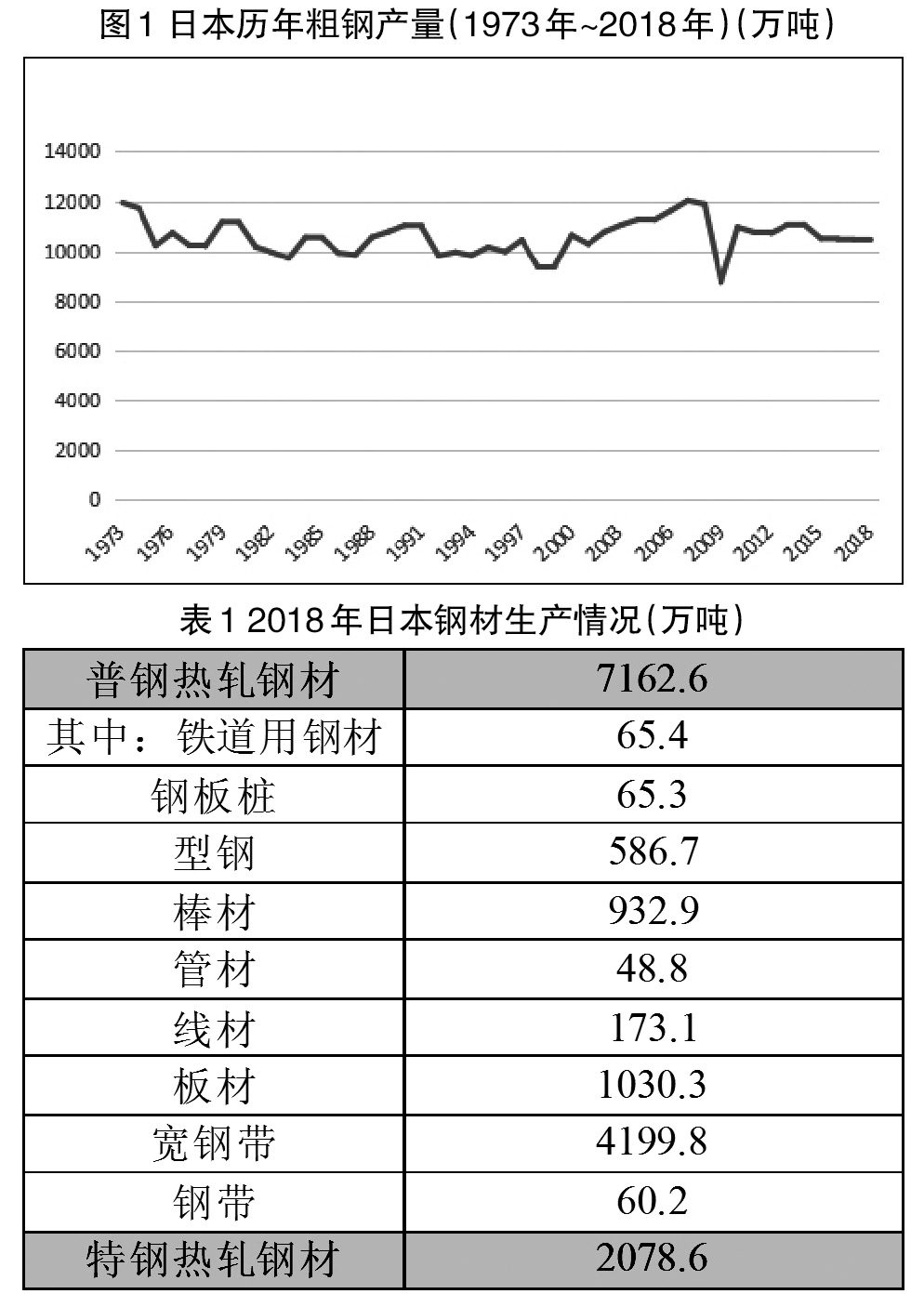 2018年,日本普鋼產量約為7873.4萬噸,同比減少1%(已經連續5年呈減少態勢);特鋼產量約為2559.5萬噸,同比增長2%(已經連續3年呈增長態勢)。