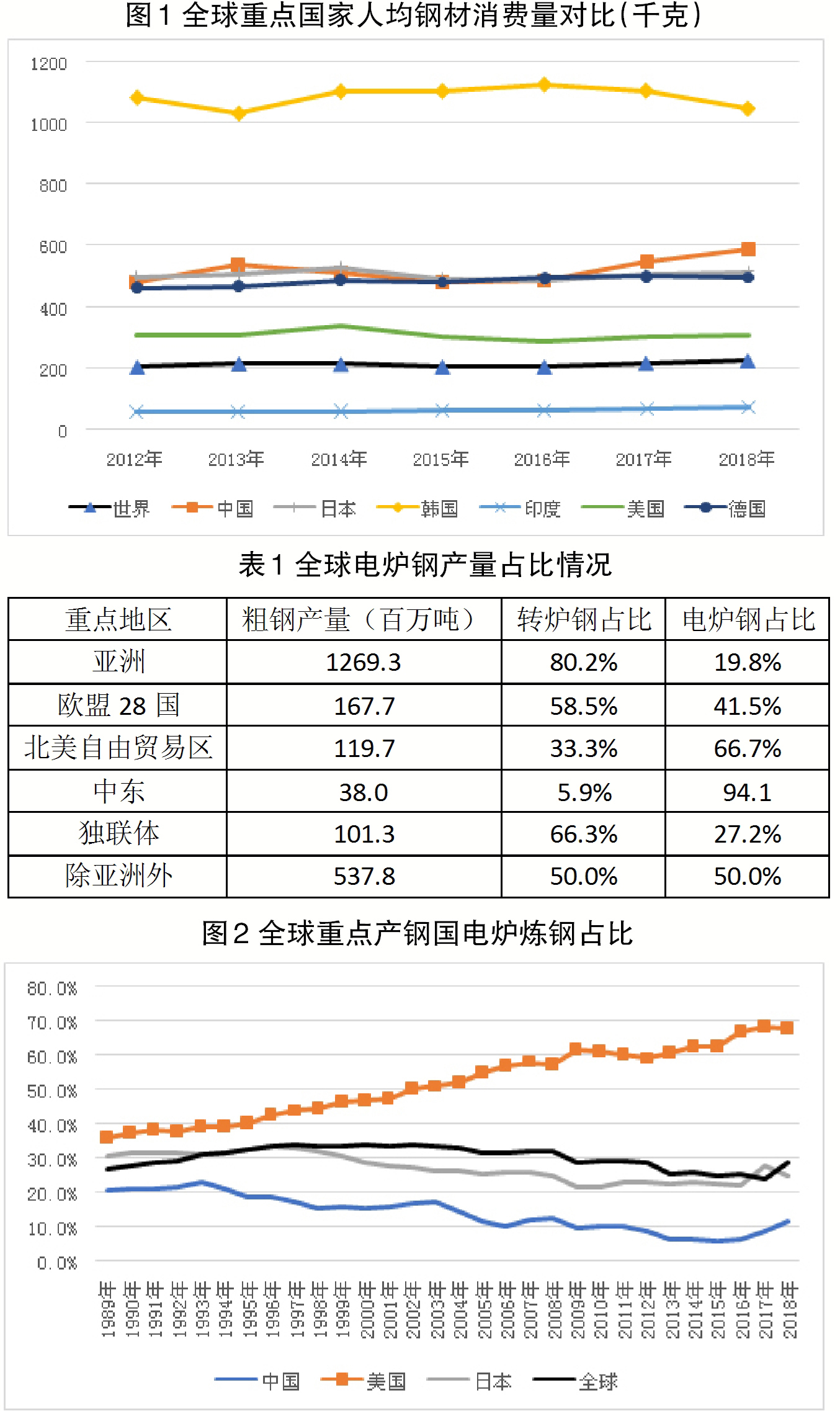 分國家來看,2018年,韓國人均鋼材消費量達到1047.2千克,為全球最高水平;中國人均鋼材消費量達到590.1千克,日本達到514.1千克,德國為495.5千克,意大利為445.0千克,美國為306.5千克,俄羅斯為285.9千克,法國為215.9千克。