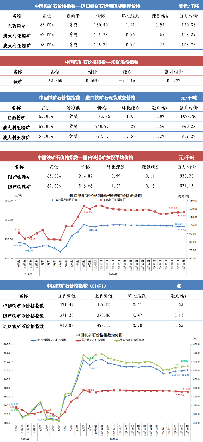 【行業指數】10月30日中國鐵礦石價格指數