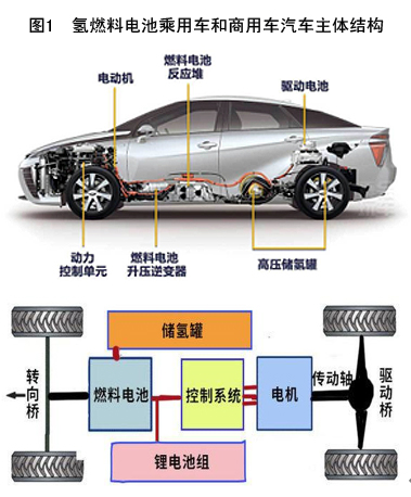 氫燃料電池汽車主體結構由高壓儲氫罐、燃料電池(反應堆)、升壓逆變器、動力控製單元、電動機、驅動電池等組成(如圖1)。