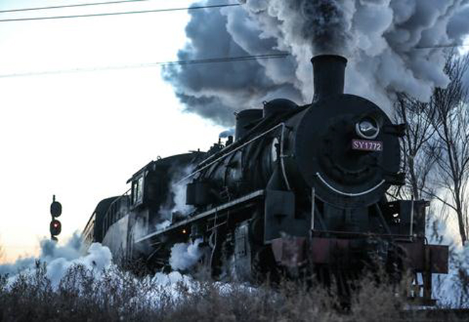 從遼寧調兵山站開往陳列館的蒸汽機車。記者 潘昱龍 攝