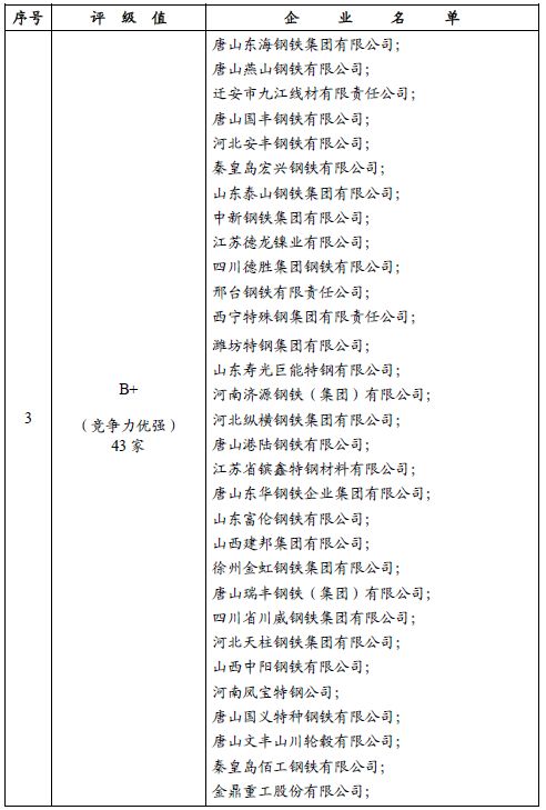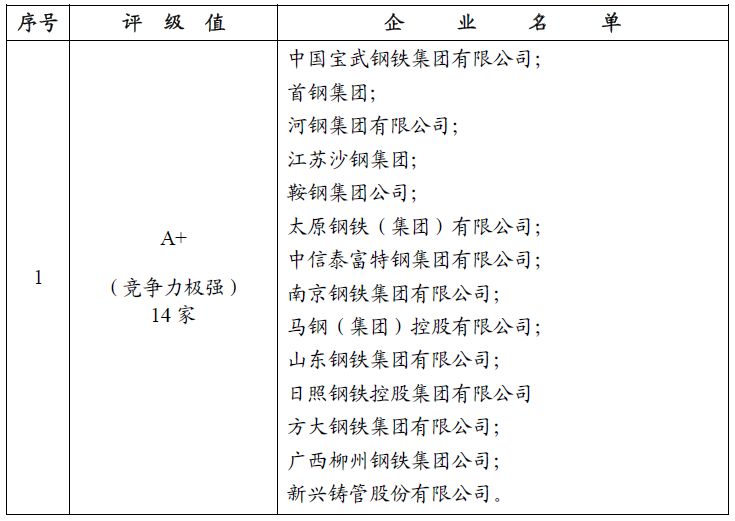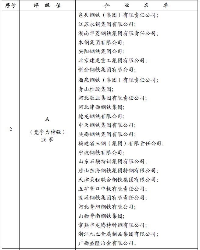 綜合比較108家鋼鐵企業的23項指標,結合專家研判,2018年中國鋼鐵企業綜合競爭力評級見表1(評級值相同的企業,不分排名先後)。