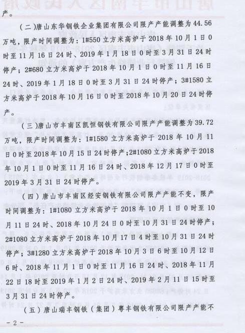 (一)唐山瑞豐鋼鐵(集團)有限公司限產產能不變,限產時間調整;