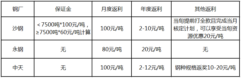 1)沙鋼返利政策