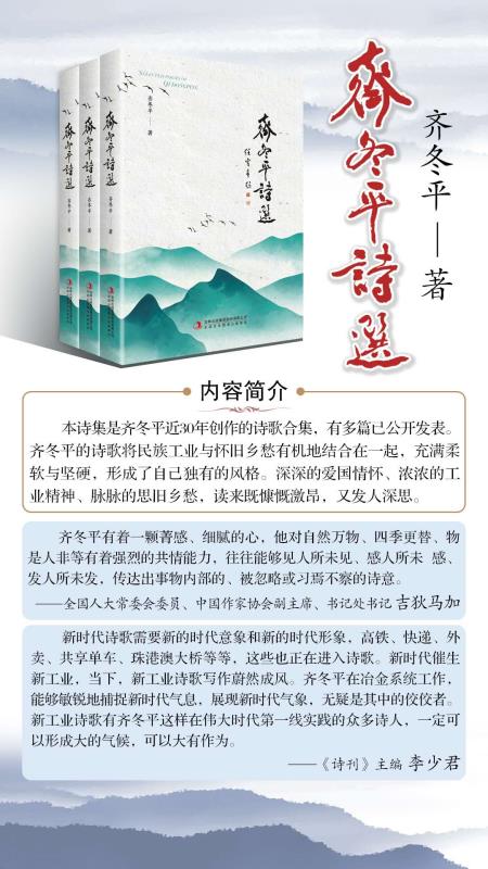 一般來說,詩人身份都是“兼職”,詩(shi)人(ren)們(men)大(da)都(dou)另(ling)有(you)職(zhi)業(ye)。詩(shi)人(ren)的(de)寫(xie)作(zuo)與(yu)他(ta)所(suo)從(cong)事(shi)的(de)職(zhi)業(ye)之(zhi)間(jian)的(de)關(guan)係(xi)有(you)的(de)明(ming)顯(xian)有(you)的(de)不(bu)太(tai)明(ming)顯(xian)。有(you)些(xie)詩(shi)人(ren)的(de)作(zuo)品(pin)一(yi)看(kan)便(bian)知(zhi)他(ta)是(shi)從(cong)事(shi)什(shen)麼(me)職(zhi)業(ye)的(de),有(you)些(xie)詩(shi)人(ren)的(de)作(zuo)品(pin)則(ze)幾(ji)乎(hu)看(kan)不(bu)出(chu)他(ta)所(suo)從(cong)事(shi)職(zhi)業(ye)的(de)痕(hen)跡(ji)。但(dan)不(bu)管(guan)怎(zen)麼(me)說(shuo),職(zhi)業(ye)對(dui)於(yu)寫(xie)作(zuo)者(zhe)是(shi)有(you)著(zhe)重(zhong)要(yao)而(er)深(shen)遠(yuan)影(ying)響(xiang)的(de),職(zhi)業(ye)決(jue)定(ding)和(he)左(zuo)右(you)著(zhe)一(yi)個(ge)人(ren)的(de)生(sheng)活(huo)內(nei)容(rong)、社會交往、觀念視野等的諸多方麵,一個人不受他職業的影響是不可能的。詩人齊冬平長期供職於中冶集團(全稱中國冶金科工集團有限公司),這是一家以冶金工業建設、運營服務為主的大型央企,他的詩似乎以上兩種狀況都有,有的與他的工作沒什麼關係,有的則有著鮮明的“中冶”特色,整體而言構成了一個非常豐富、多元、獨具個性特征的藝術世界。在齊冬平這裏,“詩”和“人”是高度統一的,他的文字背後有著明晰的個人形象,從他的詩中能真切地感受到他的人,詩歌體現著他的“初心”,也體現著他的“鄉愁”。