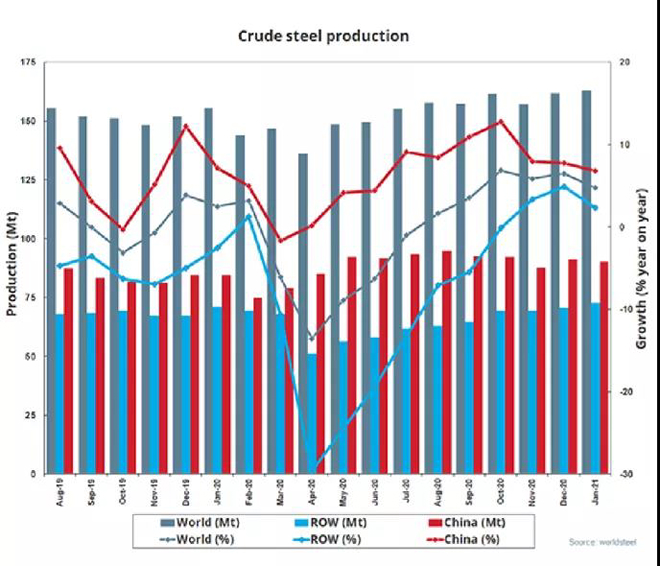 世界鋼協:1月份全球粗鋼產量同比提高4.8%丨鋼鐵財經資訊速覽
