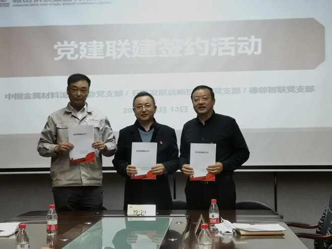 黨dang史shi學xue習xi教jiao育yu開kai展zhan以yi來lai,中zhong國guo金jin屬shu材cai料liao協xie會hui黨dang支zhi部bu精jing心xin組zu織zhi謀mou劃hua,以yi支zhi部bu聯lian建jian為wei載zai體ti,立li足zu協xie會hui定ding位wei,發fa揮hui協xie會hui所suo長chang,做zuo細xi做zuo實shi做zuo好hao黨dang史shi學xue習xi教jiao育yu。4月13日,中金協黨支部與鞍鋼集團德鄰智聯黨支部、五礦發展戰略投資部黨支部簽定三方支部聯建協議,全方位推動黨史學習教育進一步走深走實。