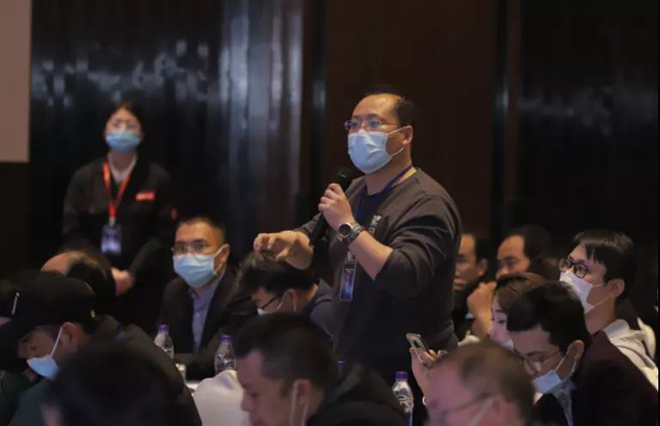 圖為鐳目科技項目經理田祖光在研討會上作報告