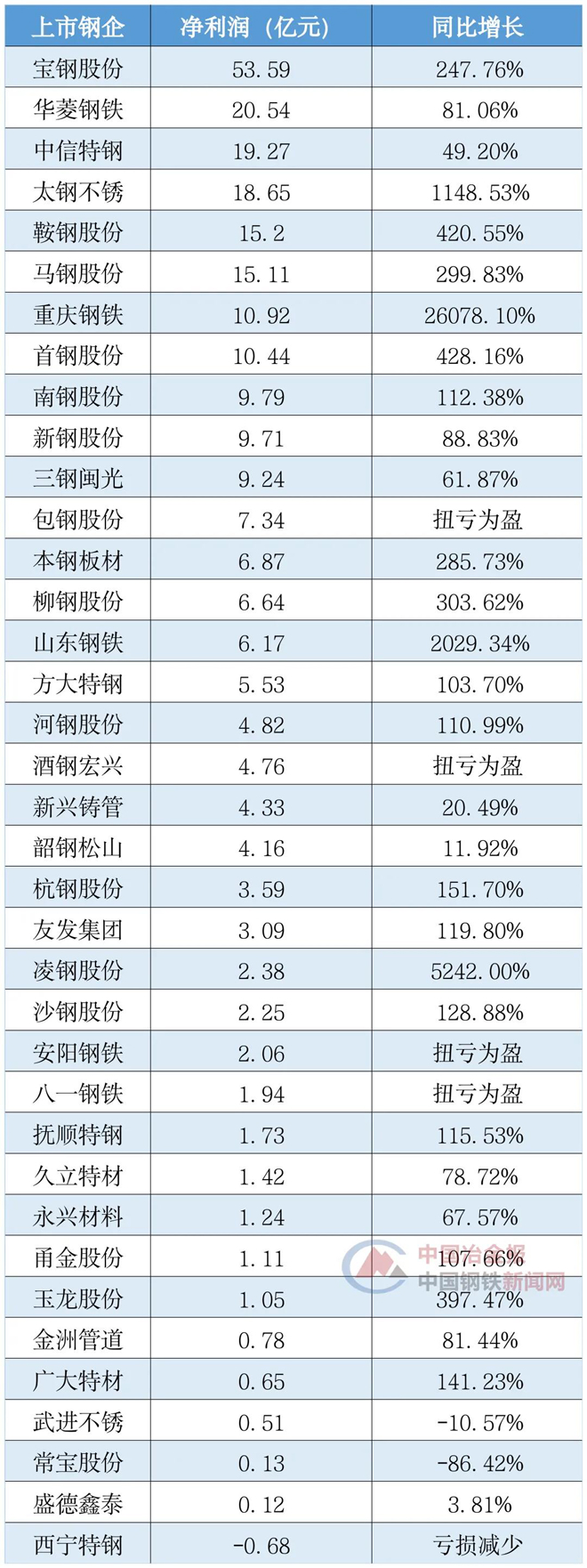 2021年一季度37家上市鋼企利潤排行榜出爐!