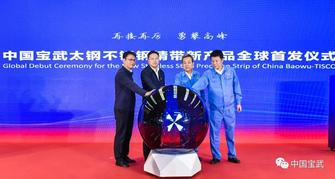 5月12日,中國寶武太鋼集團0.07mm超平不鏽鋼精密帶材和無紋理表麵不鏽精密帶鋼兩項新產品在精密帶鋼公司全球首發。