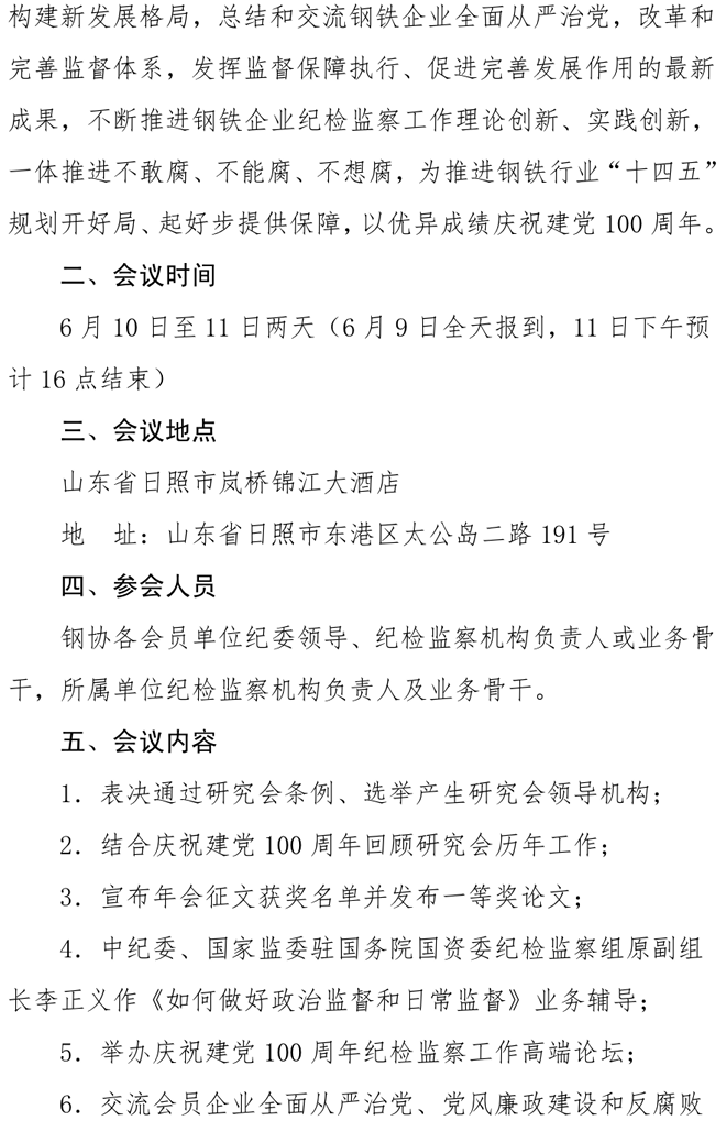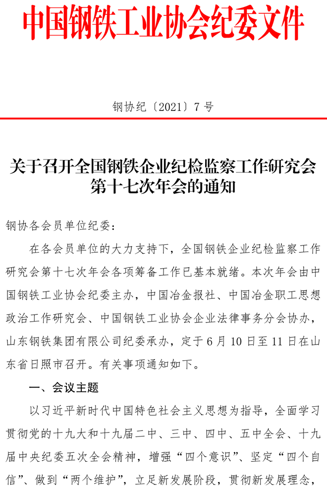 關於召開全國鋼鐵企業紀檢監察工作研究會第十七次年會的通知