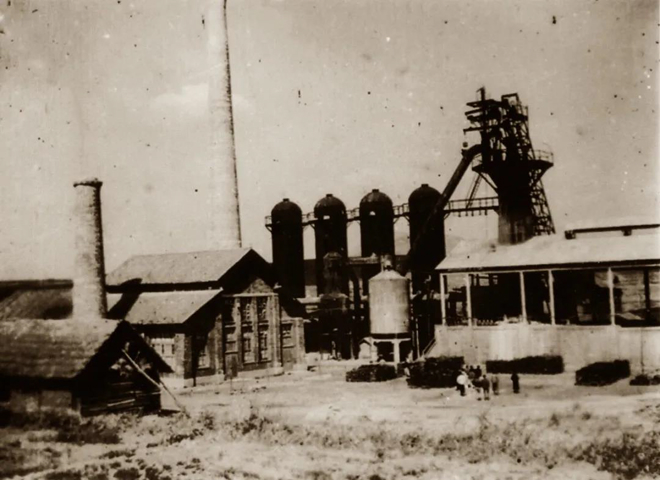 大圖為1943年雲南第一座71立方米高爐建成。小圖為徽章昆鋼。