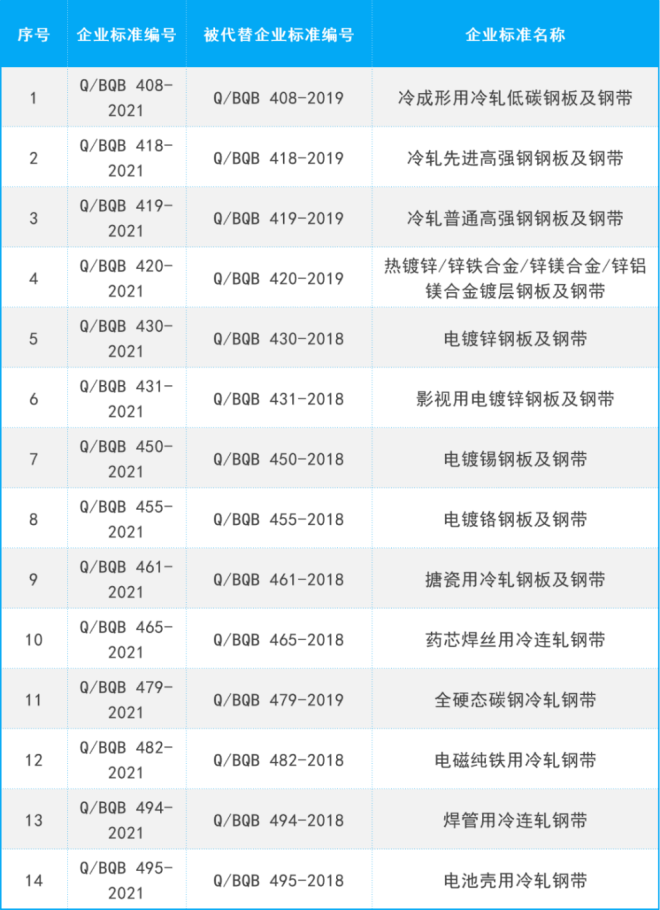 此次修訂重點針對2018、2019年發布的企業標準,根據三年來的品種拓展與生產工藝新要求,並結合用戶需求,共修訂發布了14項冷軋產品企標。