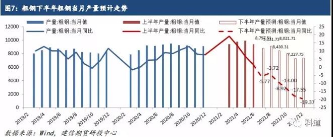 安徽省粗鋼產量壓減工作座談會:要求參會鋼廠對比2020年上報給統計局的產量數據,製定粗鋼產量壓減任務分解表,同時對參會企業提出2021年實際產量不得超過2020年。若按此要求,測算6月份產量後,預計2021年7-12月粗鋼產量同比需壓減約350萬噸,日均減1.9萬噸。