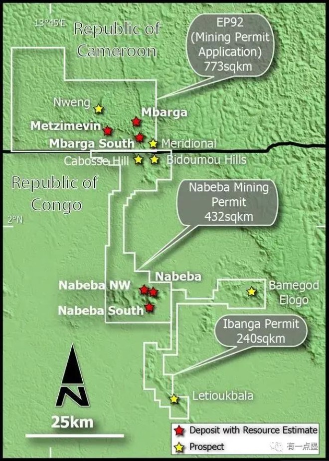 按照外媒資料顯示,穆巴拉-納貝巴鐵礦石項目橫跨中非喀麥隆共和國和剛果共和國的邊境。該項目包含位於喀麥隆共和國東部省份內的勘探許可證92(EP92)和位於剛果共和國僧伽省內的研究許可證Nabeba-Bamegod和Ibanga。