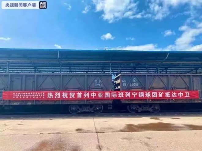 8月16日上午11時,在寧夏中衛市,一輛滿載10000噸球團鐵礦石的27008次多聯快車緩緩駛入迎水橋貨場。此次班列從哈薩克斯坦鐵路出發,經由新疆烏魯木齊局阿拉山口站駛往中衛迎水橋貨場,全程約2133公裏,運行時間6天。這是中亞至中衛首列大宗貨物國際班列,也是寧夏迎來的首個萬噸大宗貨物國際班列。