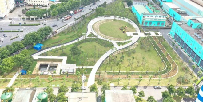 2021年6月,中冶賽迪承擔了馬鋼南區廠容整治項目“兩園三樓”EPC工程,主要包括:長材辦公樓、長材集控中心、共享服務中心三棟建築,生態園、特鋼園兩個景觀園以及相關配套設施,新建建築麵積約1.4萬平方米,景觀麵積約7.6萬平方米。項目對景觀環境進行全麵提檔升級,引入雨水花園、生態花境、透水鋪裝等特色項目,促使廠區環境品質實現美麗“蝶變”,將馬鋼打造成為獨具特色、高效共享的花園式生態鋼廠。