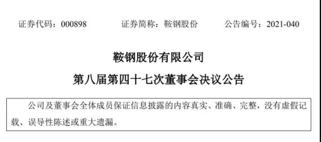 8月27日,鞍鋼股份(00347)發布第八屆第四十七次董事會公告。