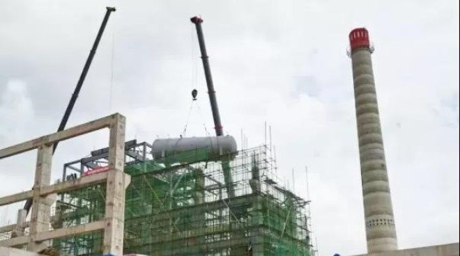 8月26日,昆鋼新區二期公輔60兆瓦熱電站工程除氧器吊裝工作順利完成。