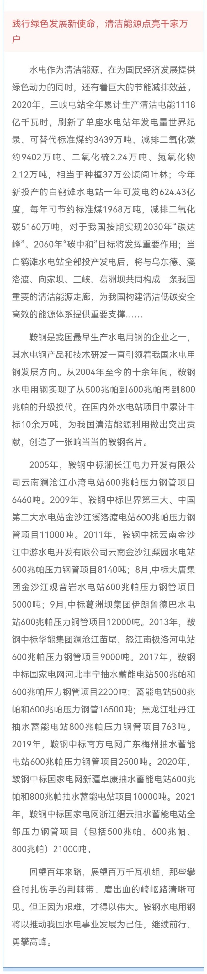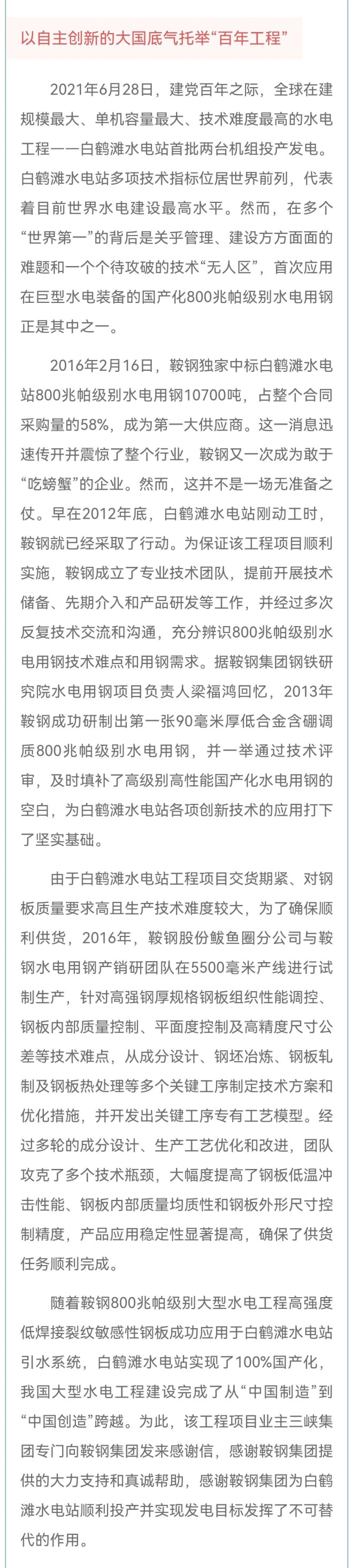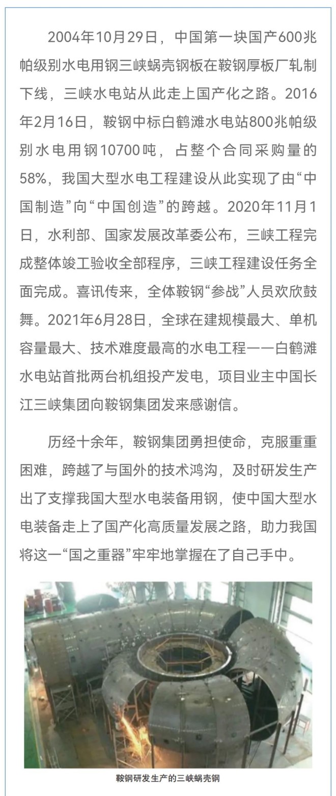 挺起水電建設“鋼鐵脊梁”——鞍鋼集團水電用鋼發展紀實