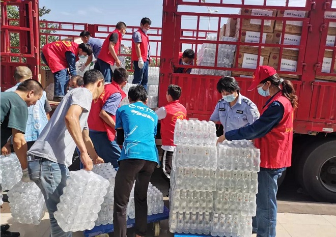 圖為發放防暑降溫物資(陝鋼供圖)