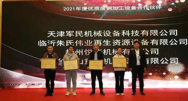 全天會議結束後,舉辦了氣氛熱烈的答謝晚宴和隆重的頒獎典禮,在參會嘉賓的熱烈掌聲下,行業領導為榮獲“2021年度優質廢鋼鐵加工企業”“2021年度優質廢鋼加工設備合作夥伴”獎項的企業代表頒發了獎牌。大會在熱烈的氛圍下圓滿落幕。